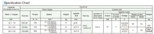 | Steel/copper | Tool No. | Torque | Speed | Weight | Spindle size |